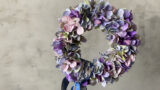 写真は実際に動画で制作したユーカリのリースで、制作から1ヶ月ほどたったリースの姿です。柔らかかった葉が乾燥してパリッとしていますが、飾った雰囲気はどこか柔らかく暖かいです。